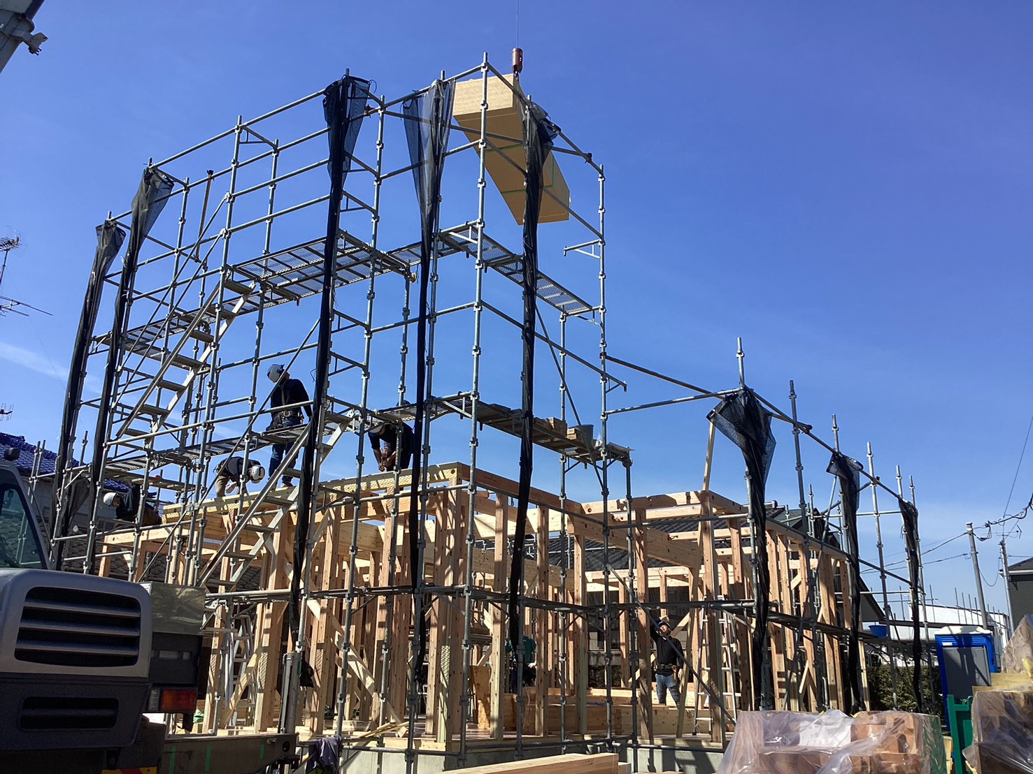 2026年4月9日(木) 栃木県佐野市植野町にて、 昨日、無事に上棟を迎えました。 当日は雲ひとつない快晴に恵まれ、絶好の上棟日和となりました。 朝から職人たちが連携を取りながら作業を進め、 柱や梁が次々と組み上がっていく様子は、何度見ても心を打たれる光景です。 現場には活気があふれ、終始スムーズに工程が進みました。 こうして無事に上棟を迎えられたのも、お施主様をはじめ、 関係者の皆様のご協力あってのことと、心より感謝申し上げます。 これから工事は本格的に進んでまいりますが、 安全第一を徹底しながら、細部にまでこだわり、一つひとつ丁寧に仕上げてまいります。 お施主様にとって末永く快適にお住まいいただける住まいとなるよう、 引き続き努めてまいります。 お施主様、このたびは誠におめでとうございます! 今後ともどうぞよろしくお願い申し上げます。