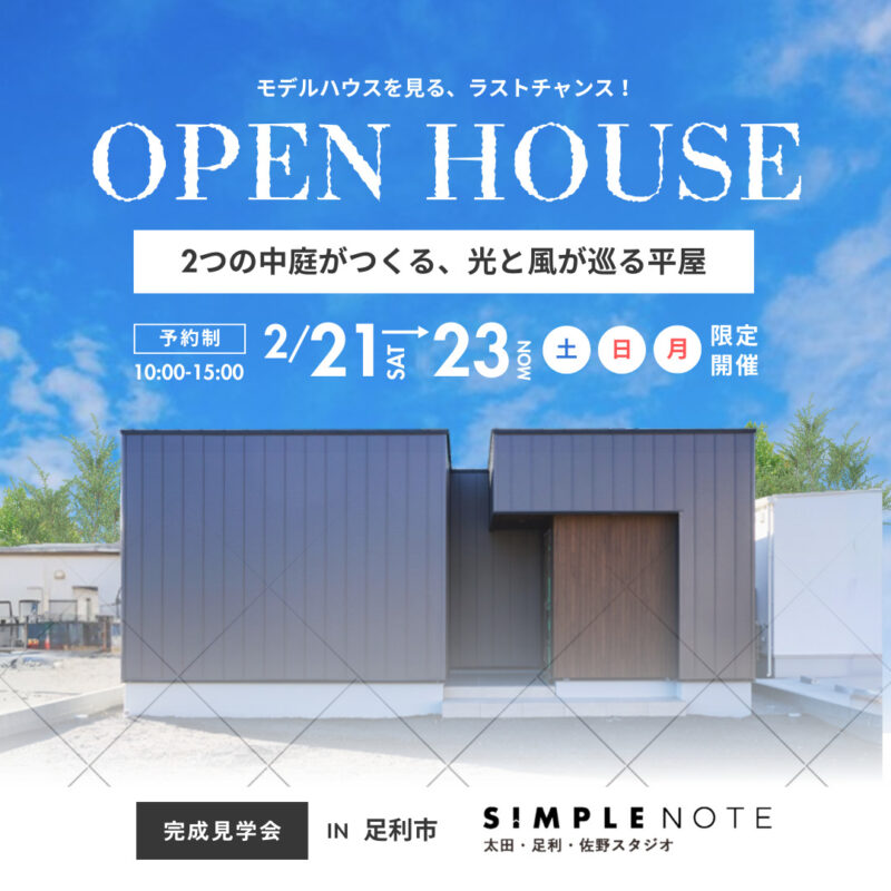 『2つの中庭がつくる、光と風が巡る平屋』八幡町モデルハウス見学会